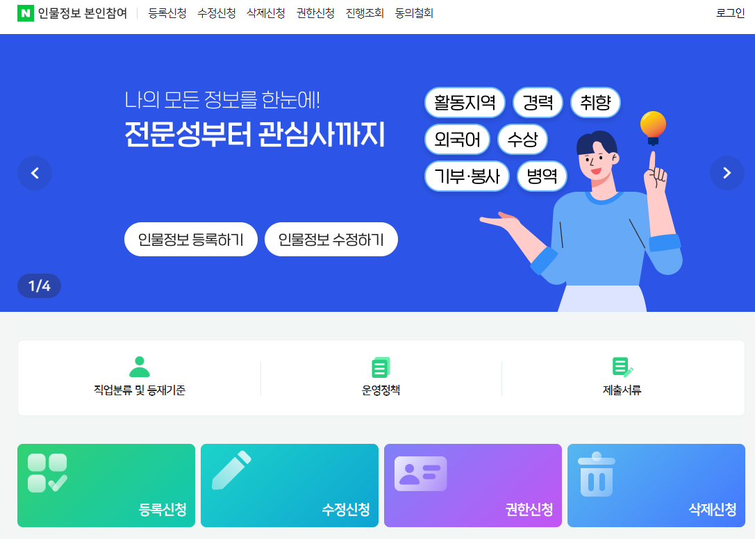 네이버에서 “네이버 인물등록” 또는 “네이버 인물검색 등록”으로 검색하면 신청 안내 페이지가 나옵니다.