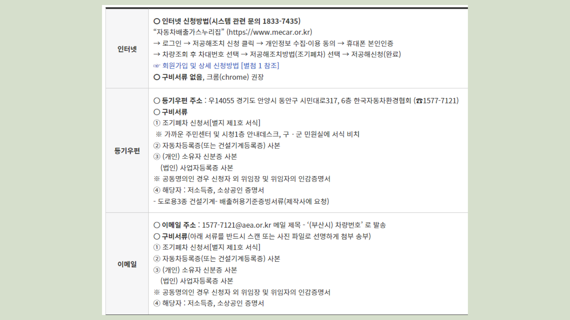 (주의) 반드시 폐차하기 이전에 한국자동차환경협회에 신청서를 제출해야 합니다!