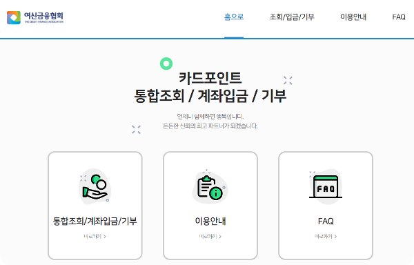여신금융협회의 '카드 포인트 통합조회서비스'에 접속하면 우리가 사용하는 카드 포인트를 한꺼번에 조회할 수 있습니다.