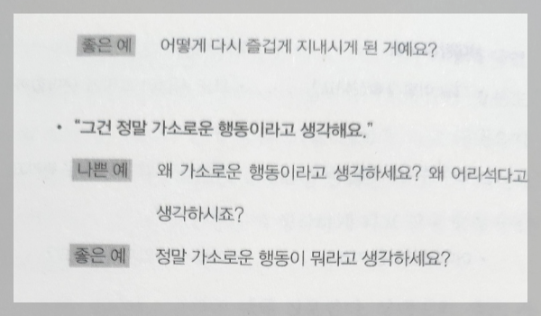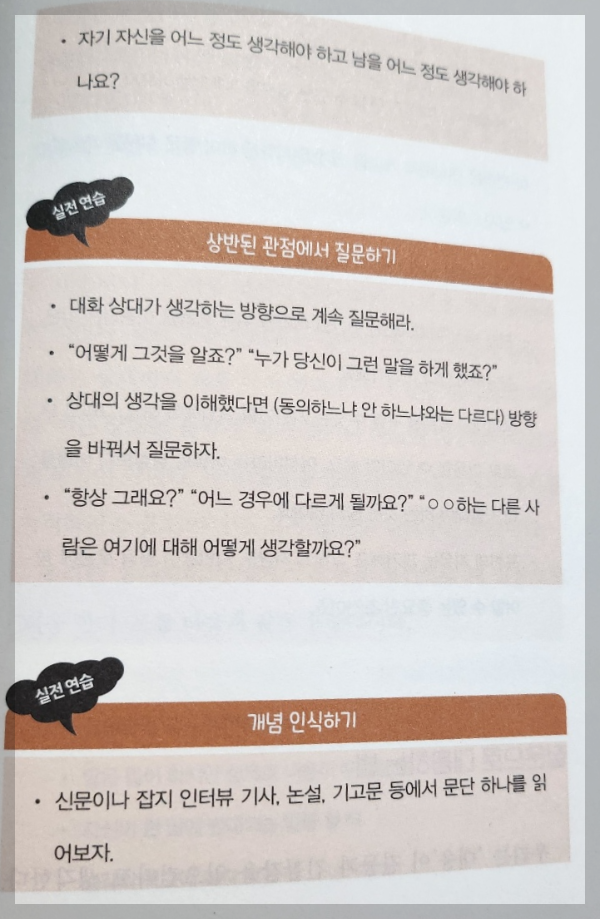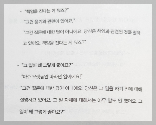 (중략) 이렇듯 질문은 우리 자신조차도 몰랐던 나의 생각을 확인할 수 있게 해 준다.