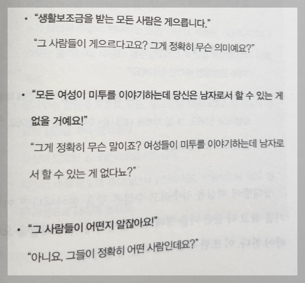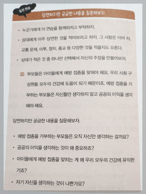 그리고 저 사람 말은 뭘 근거로 하고 잇지? 저 사람의 논리는 어떤 구조일까? 그 구조는 정당한 것일까?라고 생각하면서 질문해야 한다.