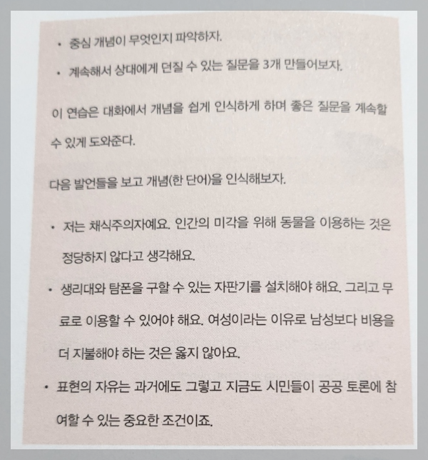 개념은 주제, 생각, 대화의 중심이 된다.개념을 인식하는 방법을 배우면 계속 질문할 수 있고 중심 내용과 아닌 것을 구분하는 데 도움이 된다.