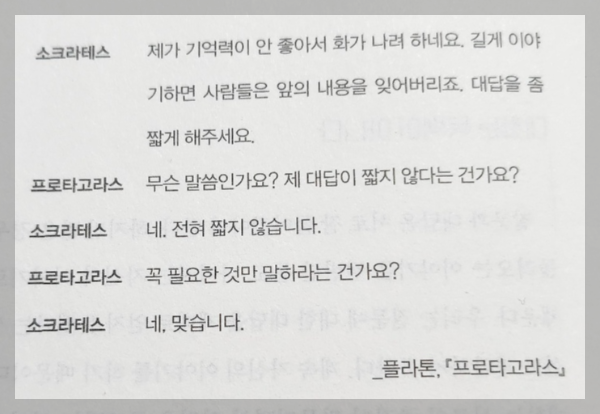 소크라테스의 문답식 대화는 상대방의 말을 다시 돌려주어 그 말을 생각하게 만든다