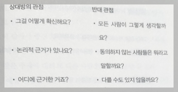 그리고 반대되는 관점에서 계속 질문하다 보면 상대방을 유연하게 만들어준다.