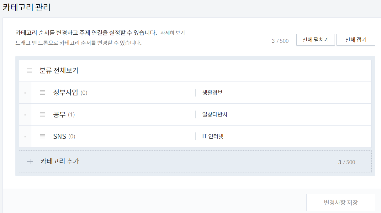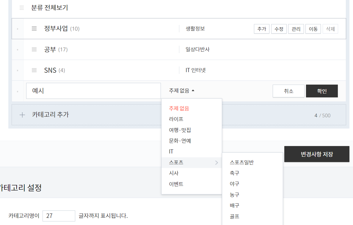 ★티스토리 블로그 카테고리 변경