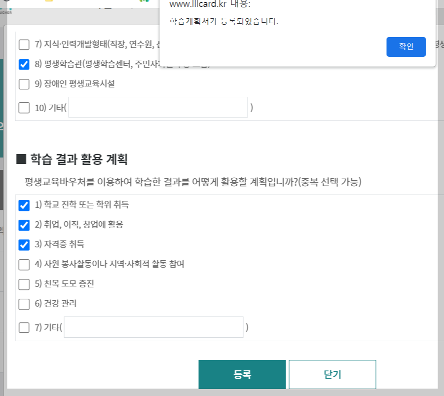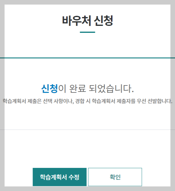 해당 유형을 클릭 후 확인을 누르면 신청이 완료되었습니다.