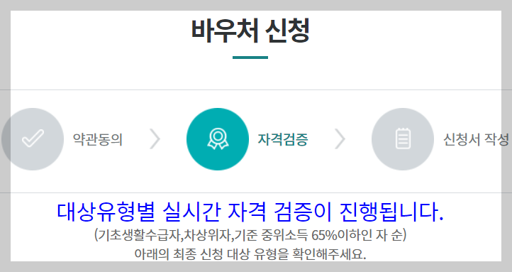 3. 동의함 선택 후 다음을 누릅니다. 실시간 자격검증 사항이 나옵니다.