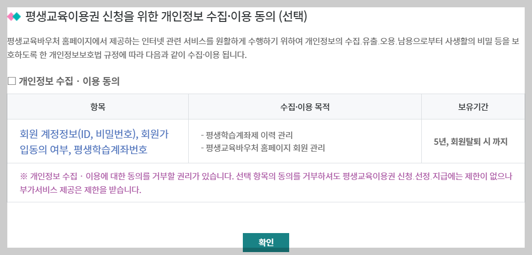 (내용 보기를 하지 않으면 동의함 선택이 안됩니다.)
